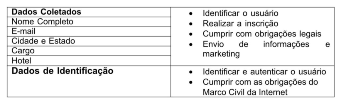 1. Dados que o site do IX Fórum Brasileiro de Hotéis Independentes coleta do usuário.